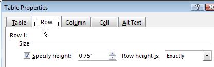 select Row height is: Exactly. Click the Cell tab, set Vertical
