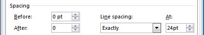ribbon to bring up a dialog box. In the Spacing section, set Before