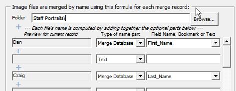 and a Merge Database lookup of Last_Name on the third row. A photo will